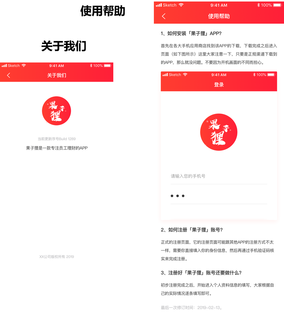 4、關(guān)于我們、使用幫助等頁面
