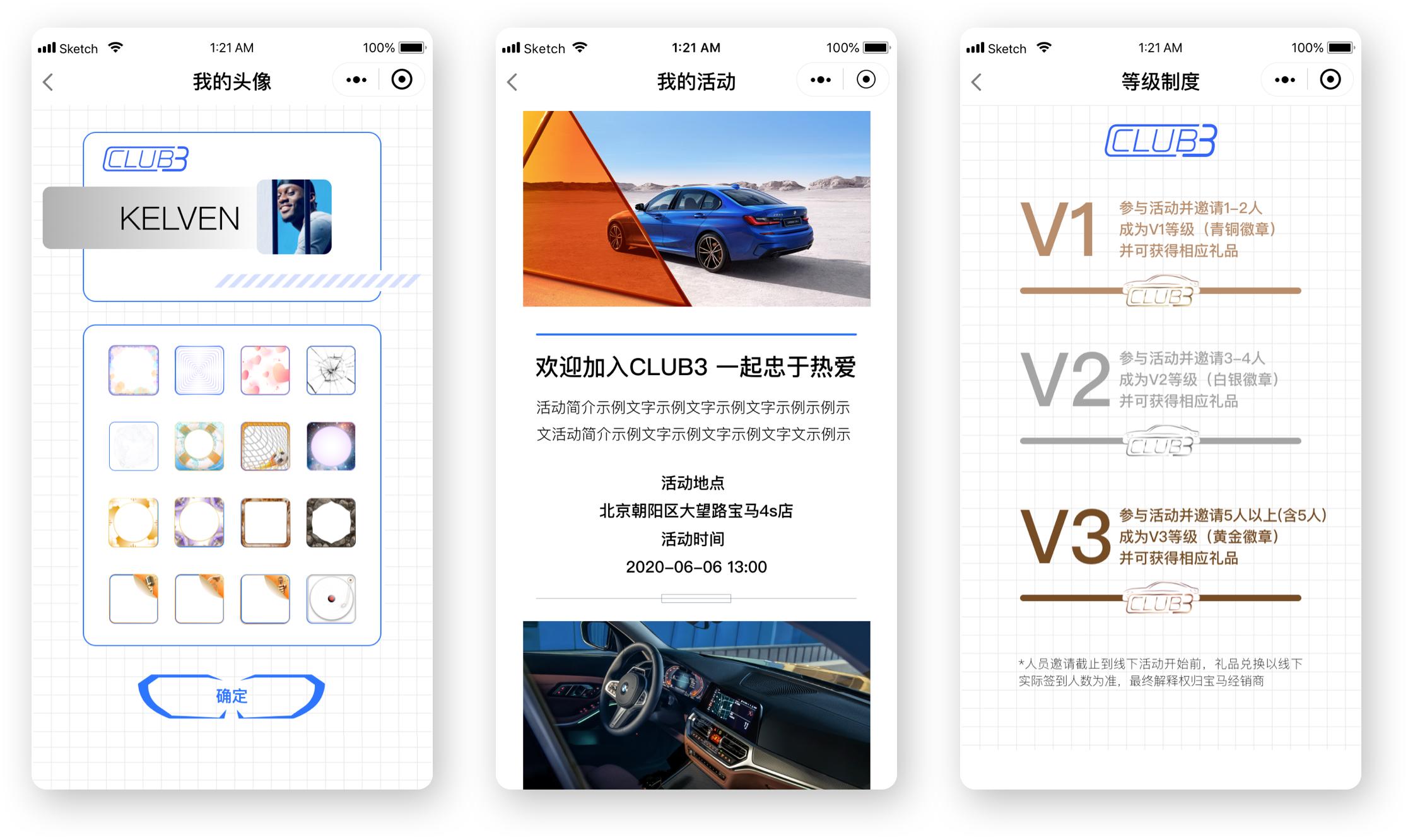 寶馬這個小程序——Club3,是一個擁有熱愛的粉絲聚集地,是充分利用私域流量,發(fā)揮KOC的重要作用,提升粉絲數(shù)量,提高寶馬用戶粘性的重要平臺。該小程序主要是經(jīng)銷商用于線下展會發(fā)布,用戶可線上報名參會,線下簽到,用戶還可以邀請用戶,有戰(zhàn)隊之分,也可以進行線上群里交流。