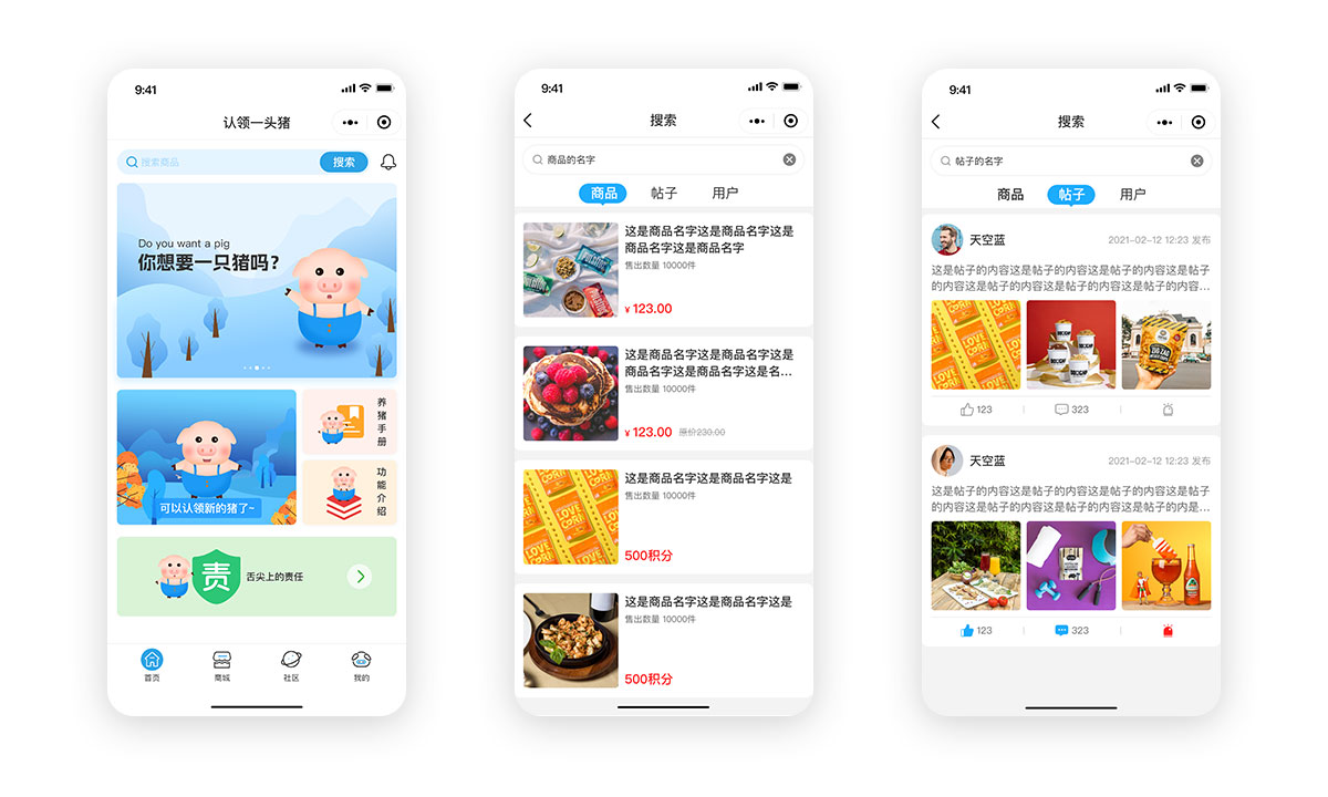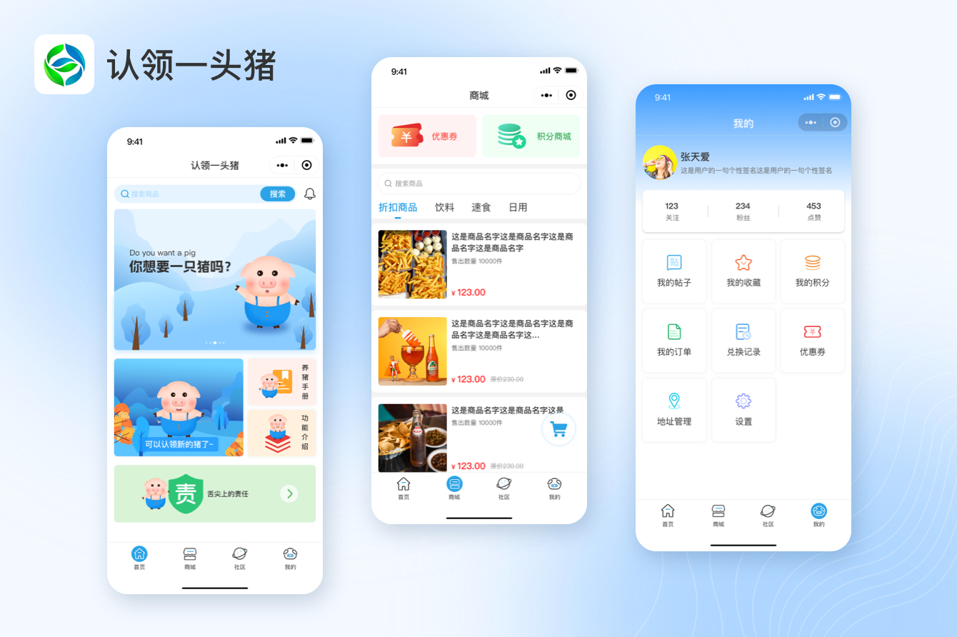 3、認養(yǎng)一頭豬社區(qū)頁面UI展示