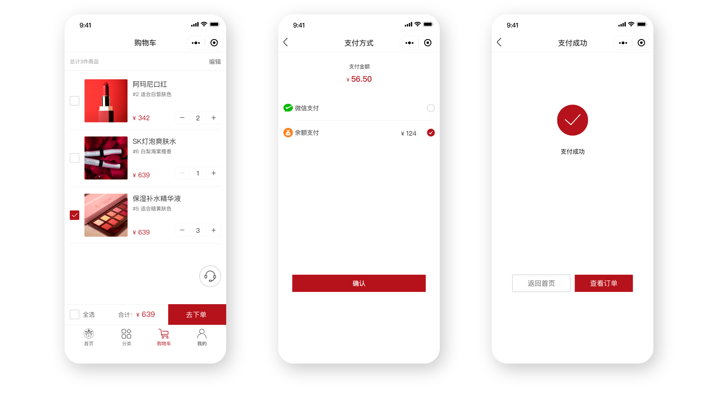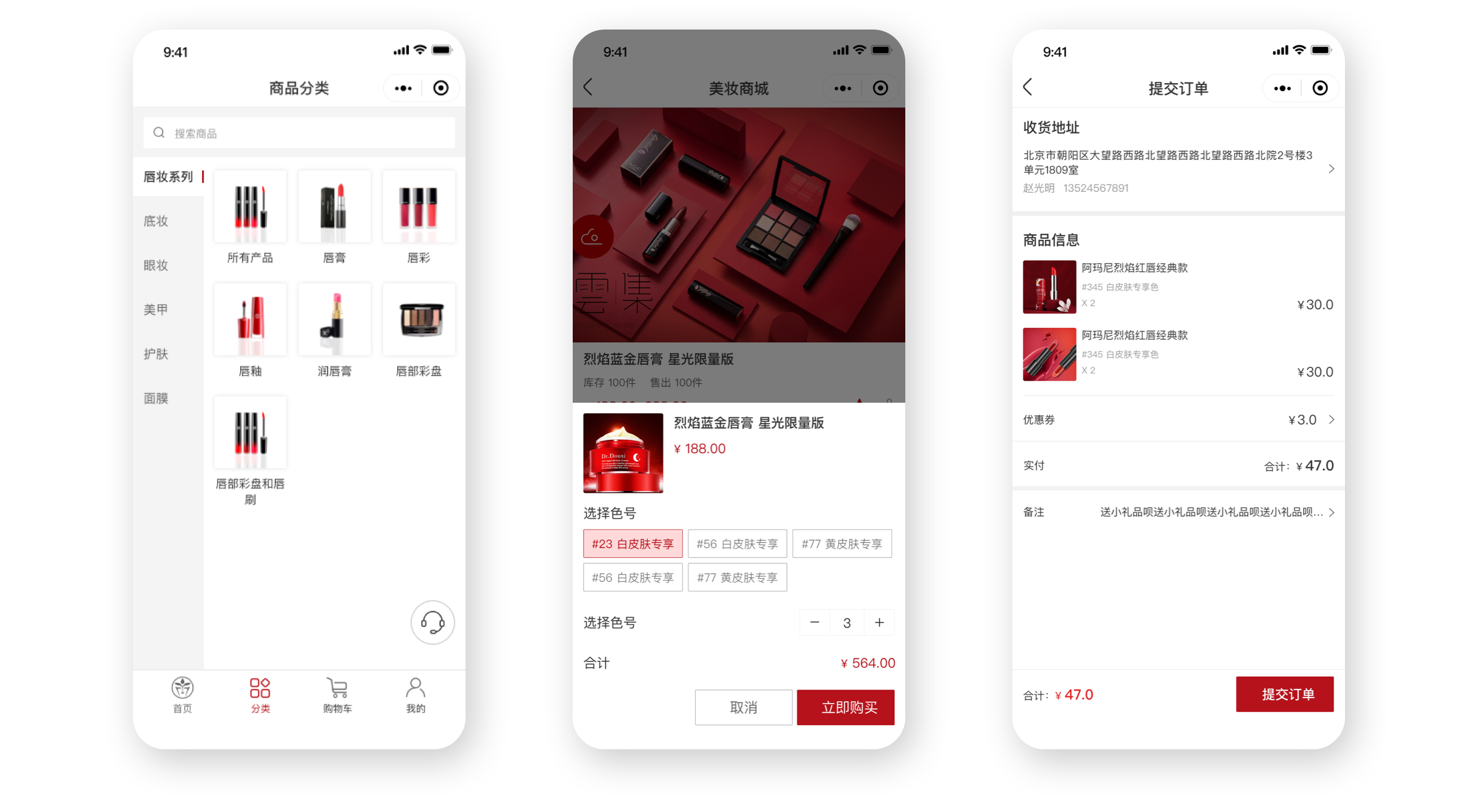 美妝商城小程序是北京合合科技為美妝企業(yè)定制開發(fā)的商城小程序,主要包括首頁的產(chǎn)品展示、我的頁面、商城頁面、購物車頁面、產(chǎn)品分類頁面、商品評(píng)價(jià)頁面等。