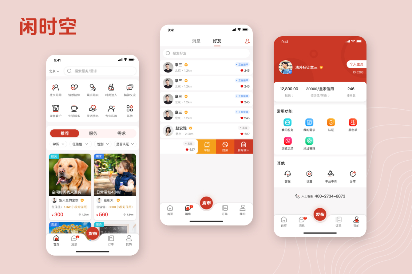 閑時(shí)空APP,將有閑暇時(shí)間的人利用起來,可以進(jìn)行線上的交易,包括社交陪同、寵物看護(hù)、生活服務(wù)、靈活代辦、專業(yè)私教等。