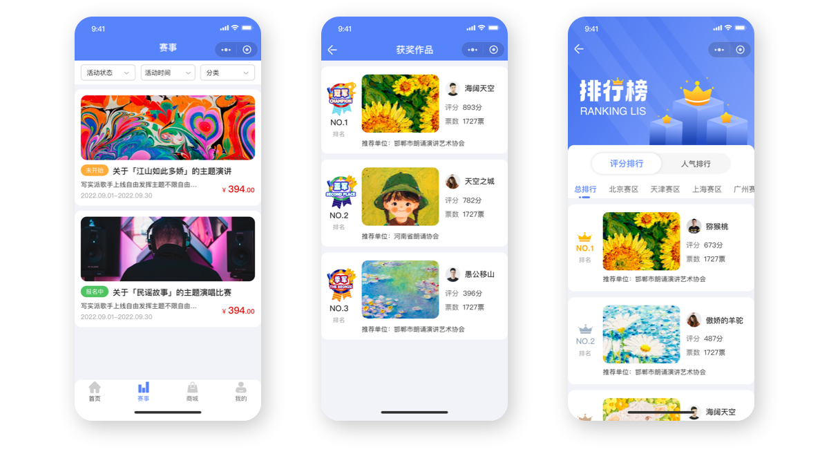 賽事商城小程序項目,主要包括了賽事報名、參賽作品展示、投票、賽區(qū)、賽事狀態(tài);商城包括了產(chǎn)品列表、商品詳情、積分商城、訂單、購物車、優(yōu)惠券等商城內(nèi)容。通過賽事可以吸引流量,通過商城可以更多變現(xiàn)的模式。
