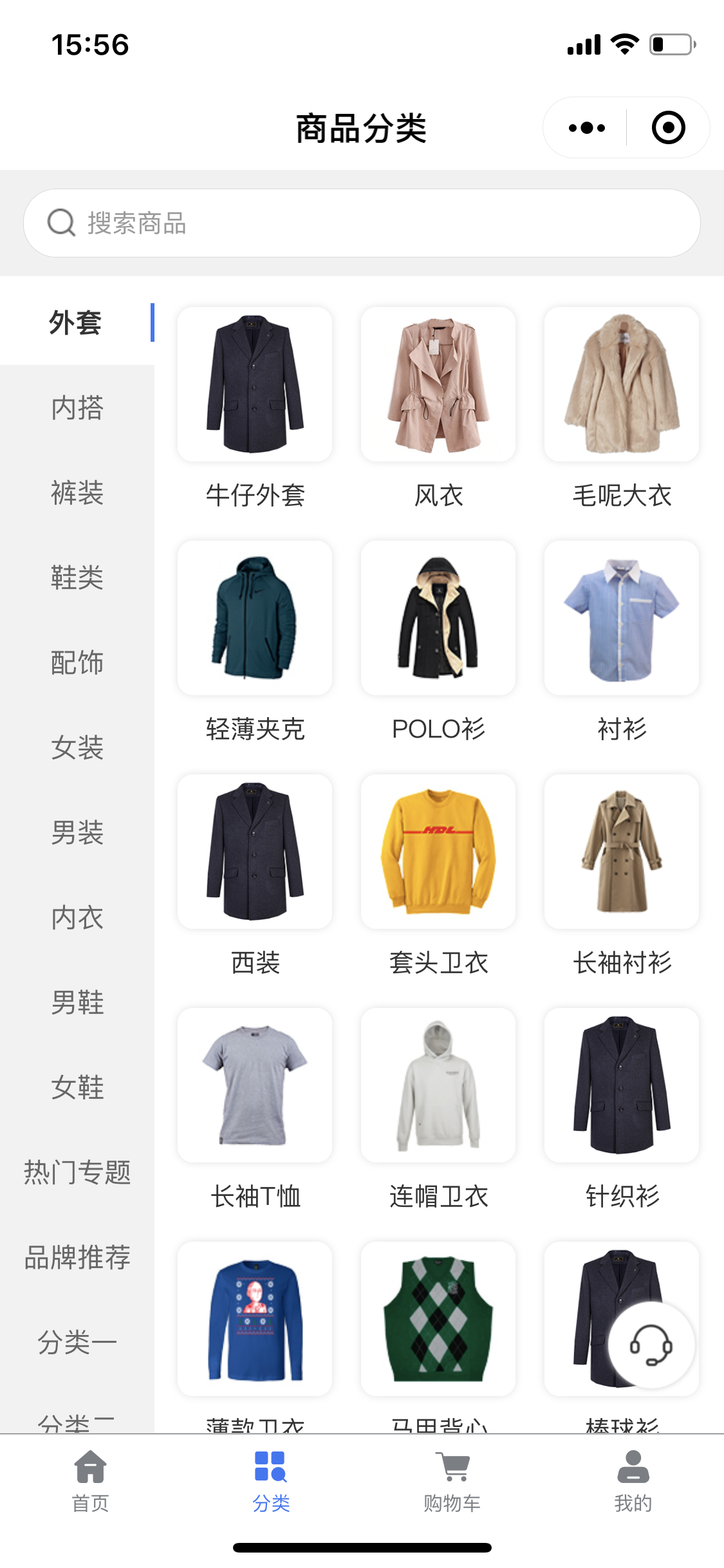 由北京合合科技開發(fā)的HHSHOP商城目前涵蓋了五大電商主題:衣服服飾、美妝護(hù)膚、便利店、商超百貨、綜合電商,適合大部分商家的電商開發(fā)需求。這里首先介紹一下衣服服飾主題的HHSHOP的功能板塊,主要分為“首頁、分類、購物車、我的”四個分區(qū)。